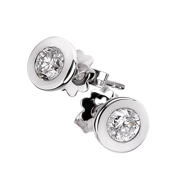Kolczyki na sztyfty wykonane w białym złocie z minimalistyczną oprawą na gładko z pewnością uzupełnią niejedną nowoczesną stylizację.
