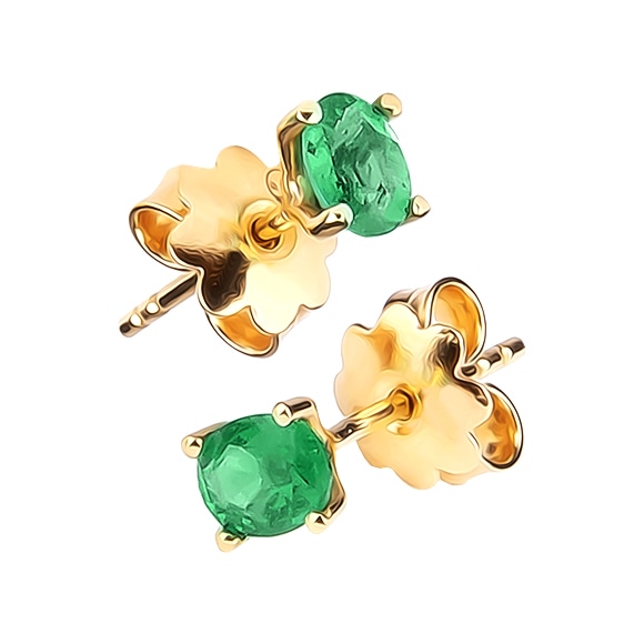 Piękne kolczyki na sztyfty wykonane w żółtym złocie z naturalnymi szmaragdami o szlifie owalnym. Kamienie oprawiono minimalistycznie w klasyczne łapki.
