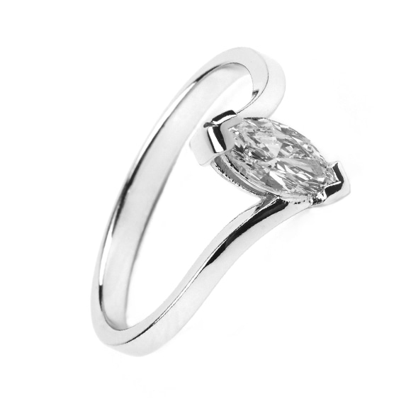 Pierścionek wykonany w białym złocie w formie asymetrycznej oprawy