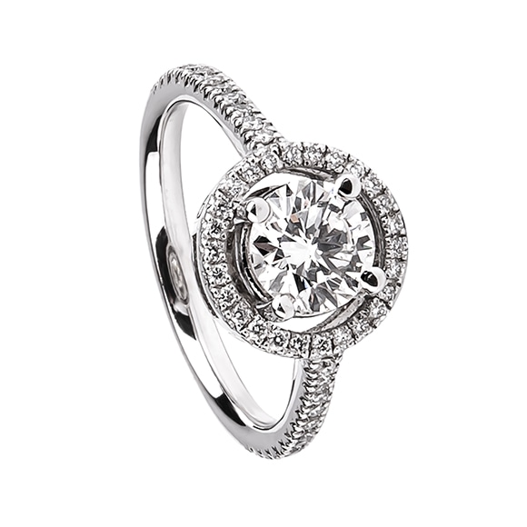 Pierścionek z białego złota z brylantową galeryjką