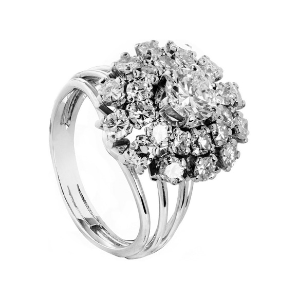 Pierścionek z białego złota z diamentami w kształcie rozety