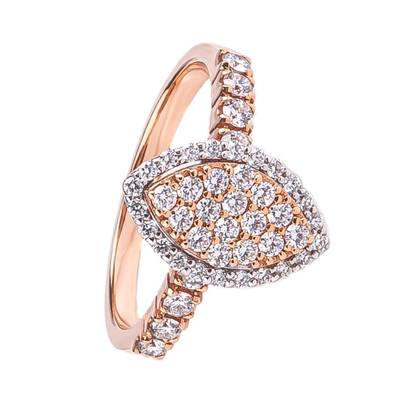 Pierścionek z różowego złota w kształcie markizy wysadzany brylantami